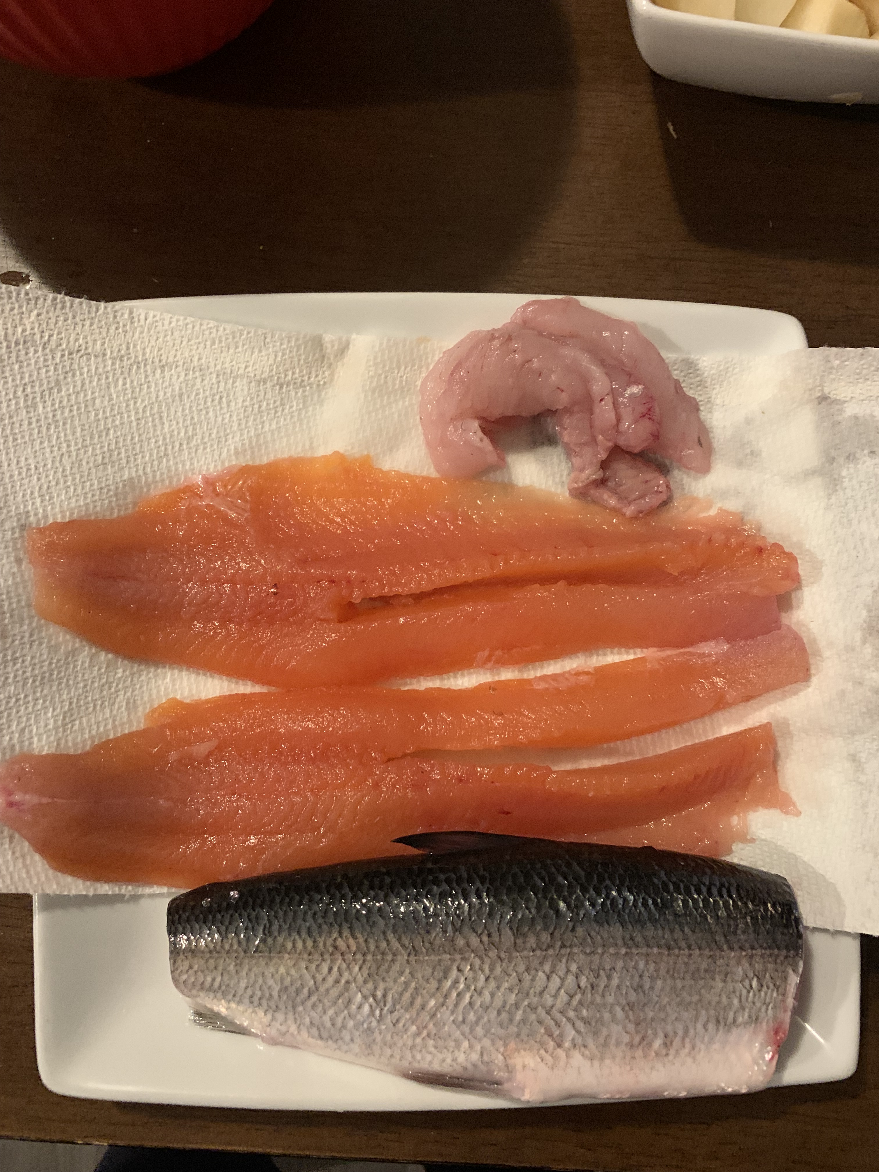 I also caught a Rock Bass in 75 feet of water, but clearly it did not make the final photo. Some rough fish deserve the moniker and are set free to live another day. You can see the final products in the gallery as well, noticing the bright orange meat of the stocked Lake Trout. It’s always cool seeing the different colour depending on the diet of the fish. Is catching a Lake Trout, Cisco and Burbot from the same hole some sort of new Grand Slam, or the Holy Trinity of cold-water fish species?